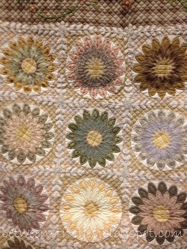 Now back to the quilt waiting patiently folded on top of a standing quilt hoop. Two-thirds of the quilt is done and then I can check this one off the list too....see a pattern here?