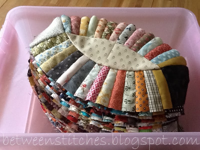 Luckily my closet is organized, and the stacks of fabrics short enough, and at the right height for me to pull out ( I'm not allowed to do practically any lifting). A perfect opportunity to dive into my stash and use almost a bit of everything.....